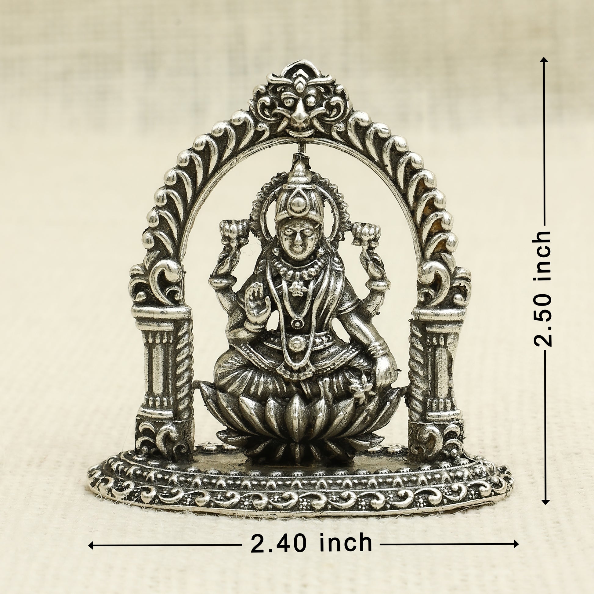Antique Finish Silver Lakshmi Idol – Seated on Lotus with Arch Frame