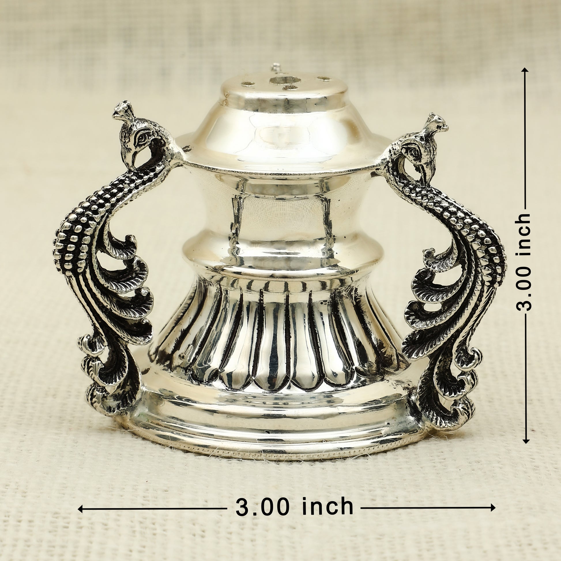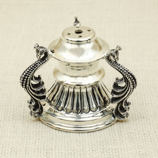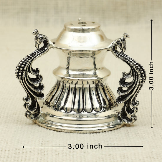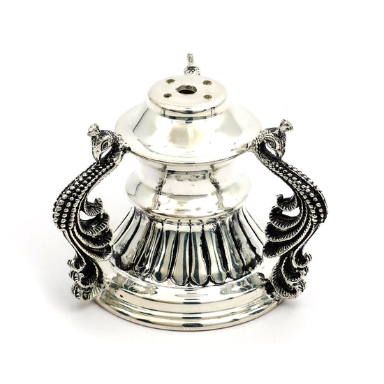 Antique Finish Silver Peacock Handle Dhoopiya – Ornate Traditional Design