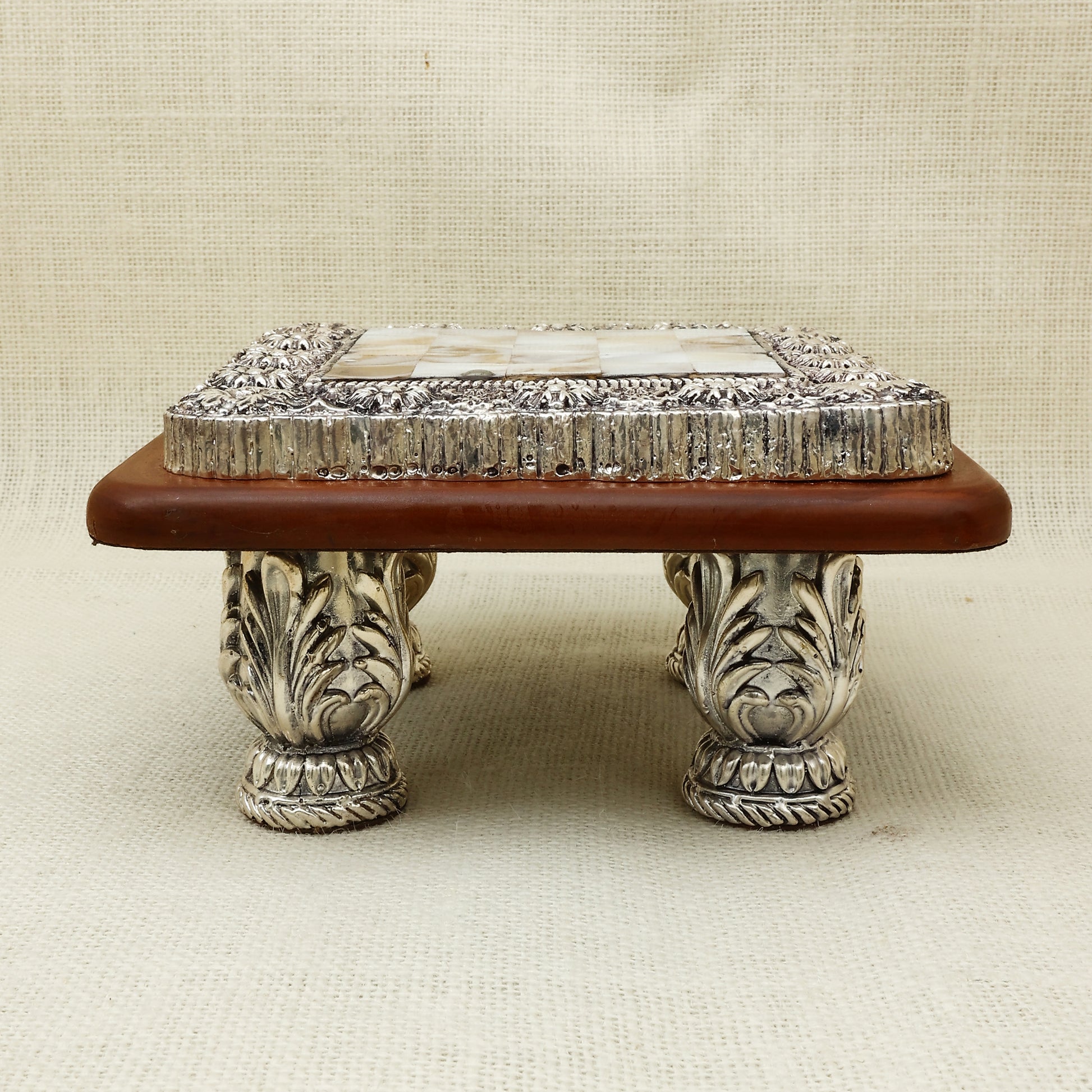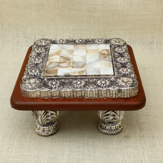 Antique Silver Chowki with Mother of Pearl Inlay – Wooden Base