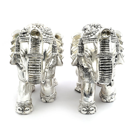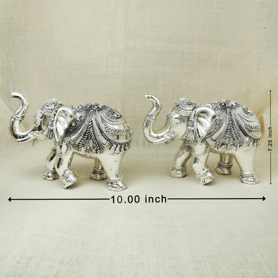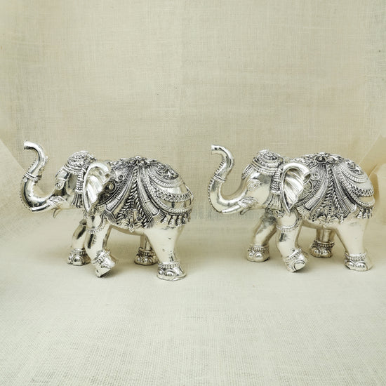 Elephant Pair – Intricately Carved Decorative Showpieces- Resin Silver