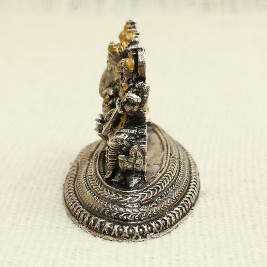 Bring home blessings of prosperity, wisdom, and knowledge with this intricately detailed antique silver idol set featuring Goddess Laxmi, Lord Ganesha, and Goddess Saraswati. Each deity is gracefully seated on a lotus pedestal, symbolizing purity and divine grace. The golden highlights accentuate their features, making it a perfect centerpiece for Diwali, housewarmings, or spiritual gifting.