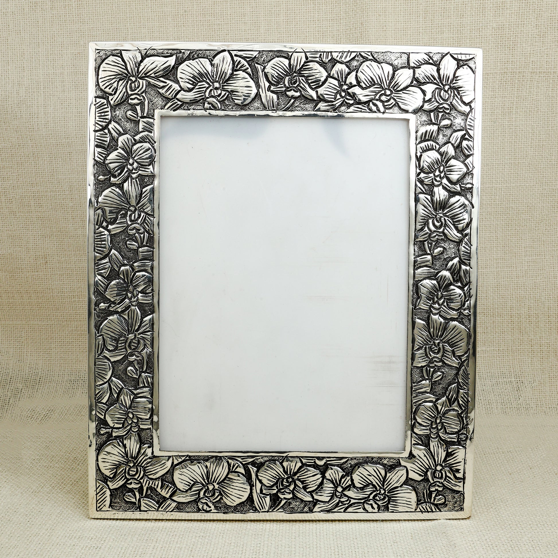 Antique Silver Floral Engraved Photo Frame – Wooden Base