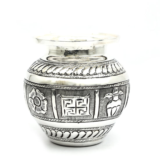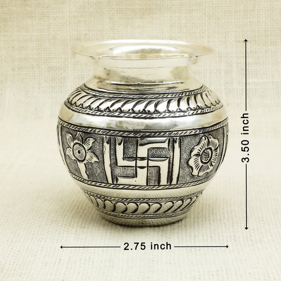 Antique Silver Kalash with Swastik and Floral Engravings – Traditional Design