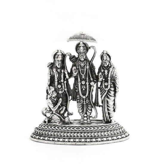 Celebrate devotion and righteousness with this intricately designed antique silver Ramdarbar idol, featuring Lord Ram, Goddess Sita, Lakshman, and the ever-devoted Hanuman in reverence. The fine detailing and traditional design bring a timeless spiritual aura to your pooja room or temple space. Ideal for daily worship, festive rituals, or as a meaningful gift for spiritual occasions and housewarmings.