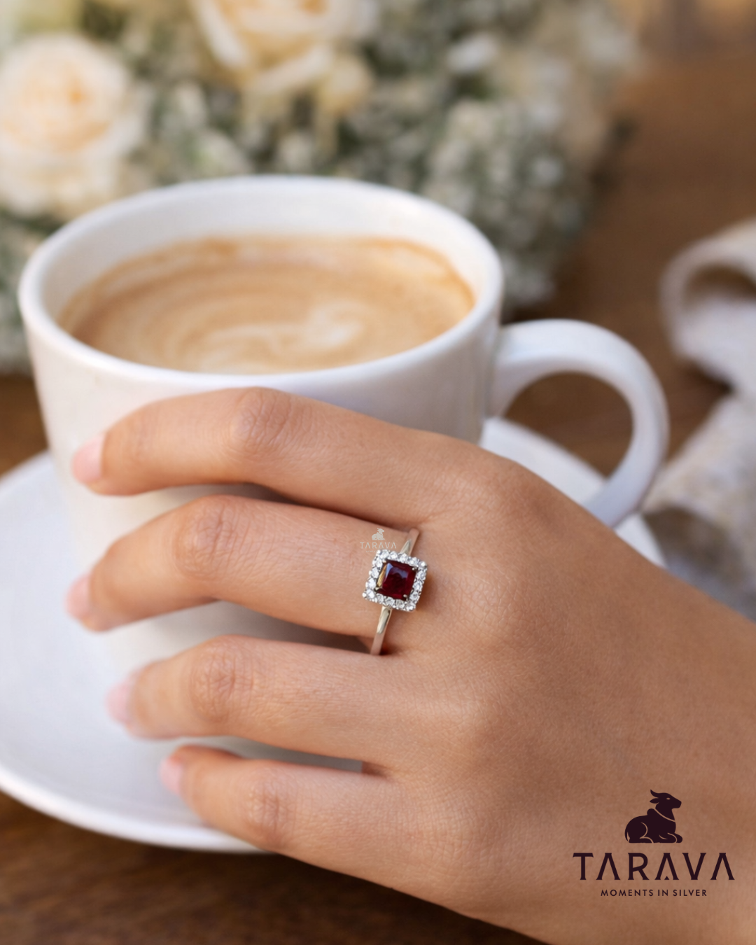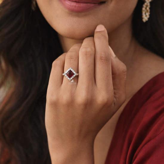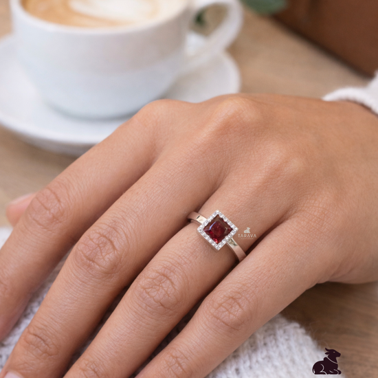 A statement of understated elegance, this TARAVA sterling silver ring features a striking square-cut red gemstone framed in a sleek silver setting. Designed to balance modern aesthetics with timeless charm, it’s perfect for both everyday sophistication and special occasions.