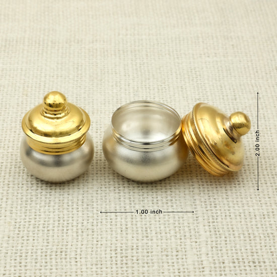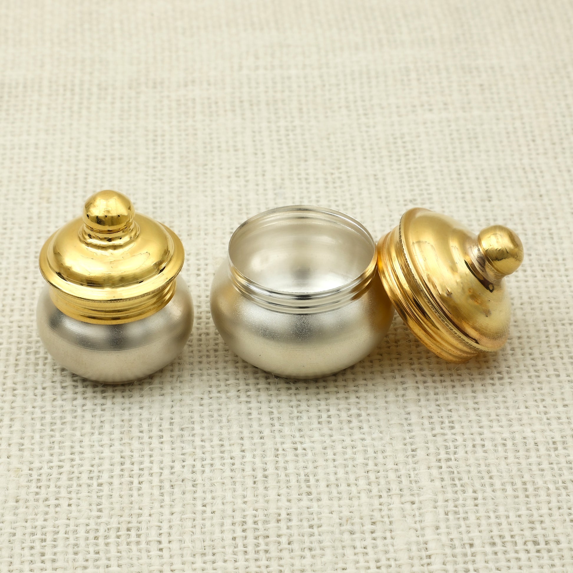Dual-Tone Brass & Silver Kumkum Containers with Lids – Traditional Pooja Essentials