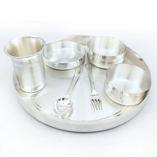 Elegant Silver Dinner Thali Set – Complete Traditional Dining Ensemble