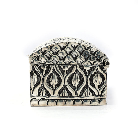 Store your dry fruits in style with this beautifully handcrafted silver dry fruit box. Featuring intricate floral and traditional motifs, this ornate box is a perfect blend of utility and artistry. Its antique finish adds a vintage charm, making it an ideal addition to your kitchen or dining space. This box also makes a thoughtful and luxurious gift for festive occasions, weddings, and housewarming ceremonies.