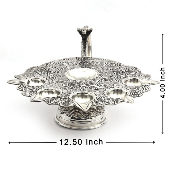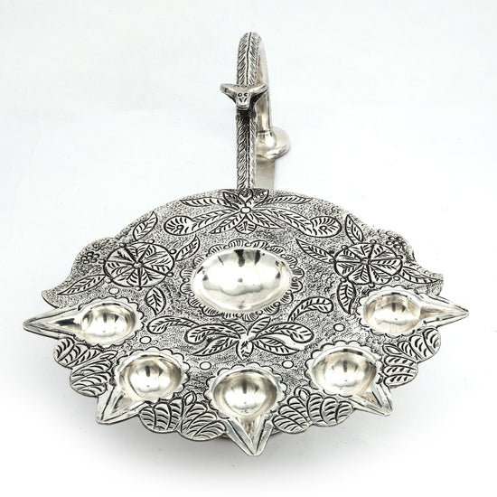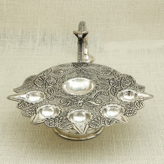 Exquisite Silver Pancharti – Traditional Five-Wick Aarti Lamp