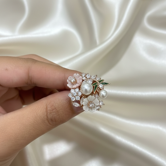 Cluster-style silver ring with decorative elements for a rich appearance.