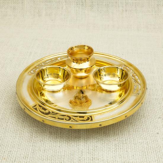Gold-Plated Pooja Thali Set with Kalash and Bowls – Traditional Design