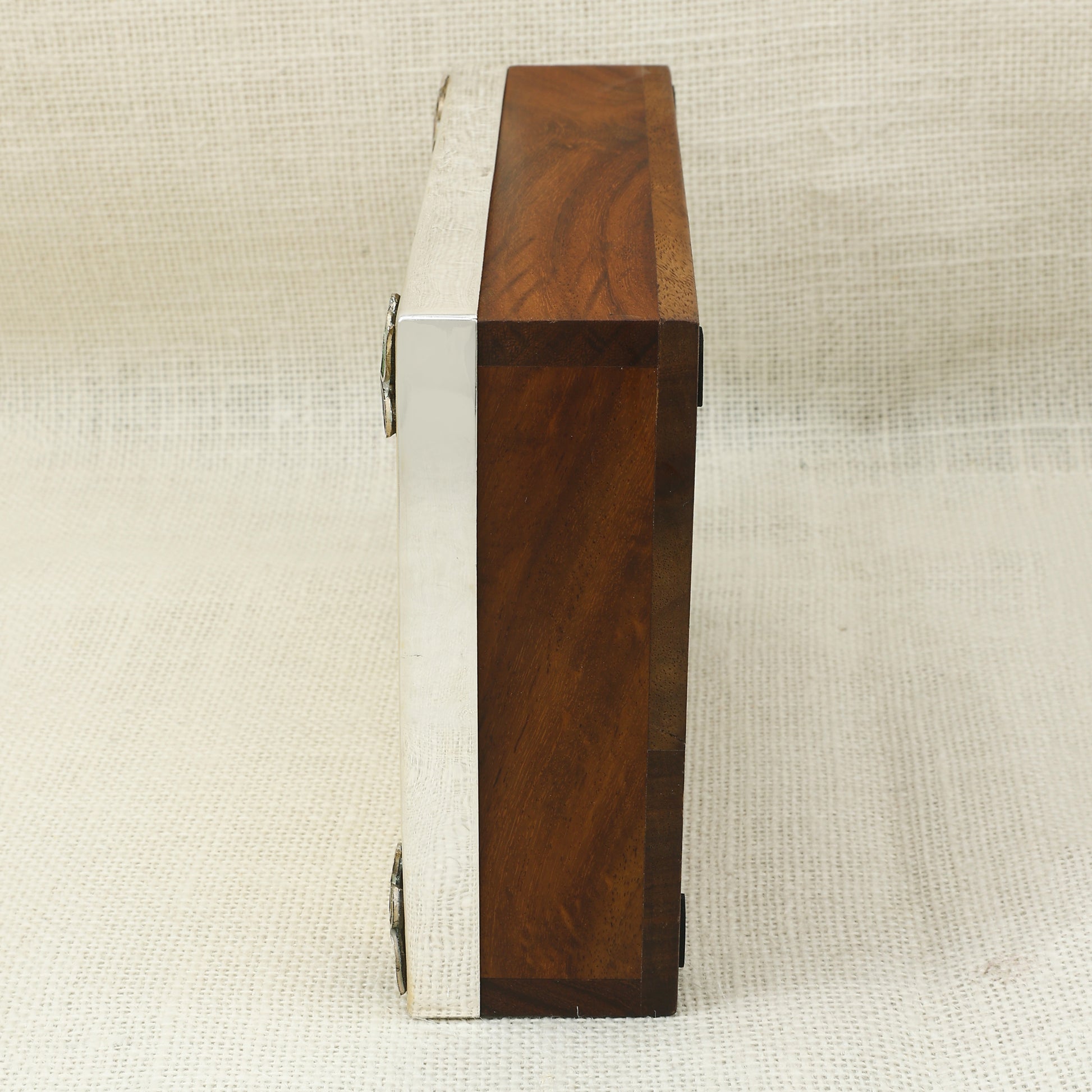 Enhance your living or pooja space with this stunning handcrafted silver finish box, beautifully adorned with a dense pattern of embossed floral motifs. The intricate detailing and high-polish finish make it a striking decorative piece as well as a practical storage solution for jewelry, letters, or sacred items. Perfect for gifting during weddings, festivals, or special occasions, this box exudes timeless elegance and traditional charm in every detail.