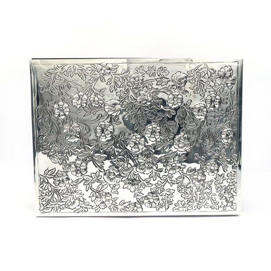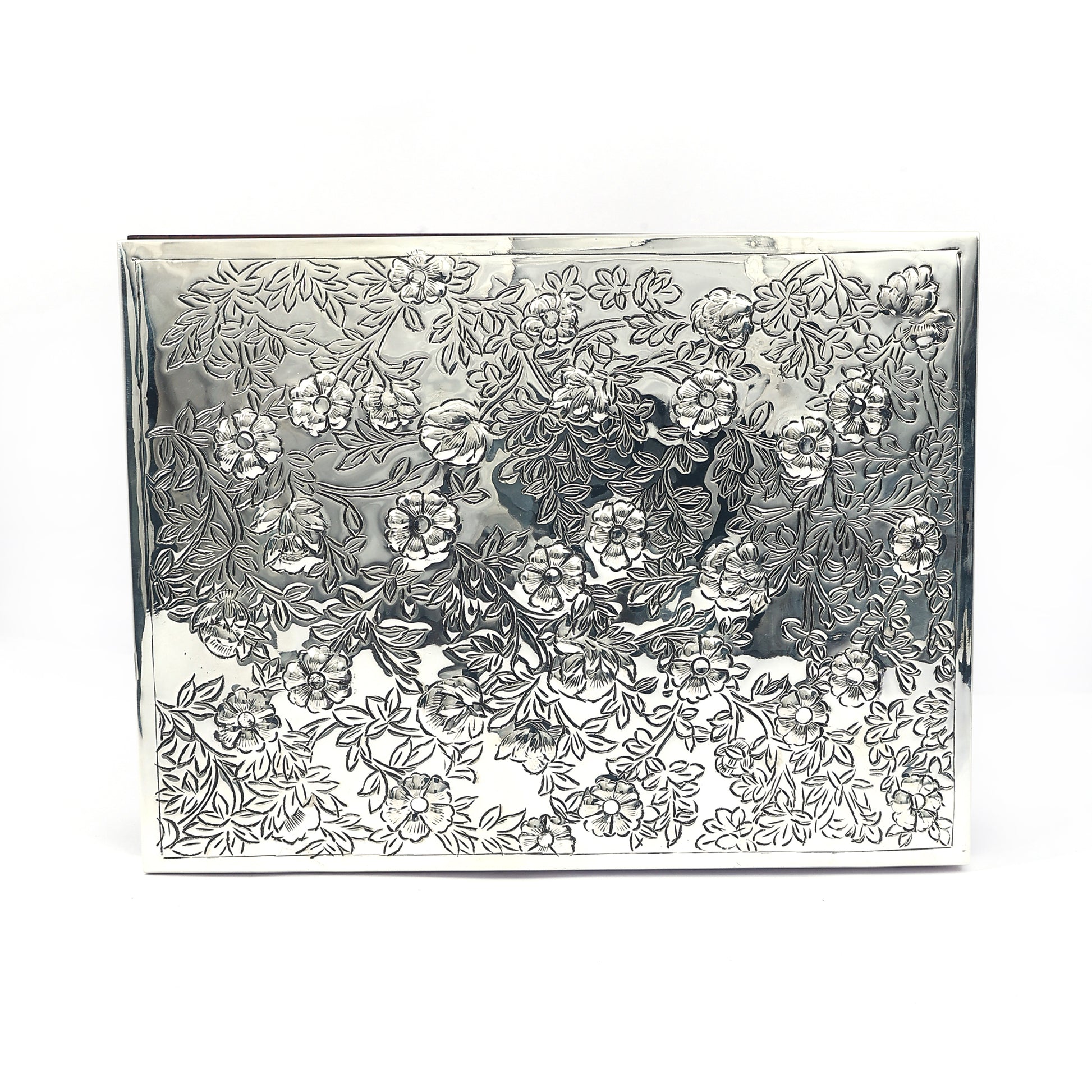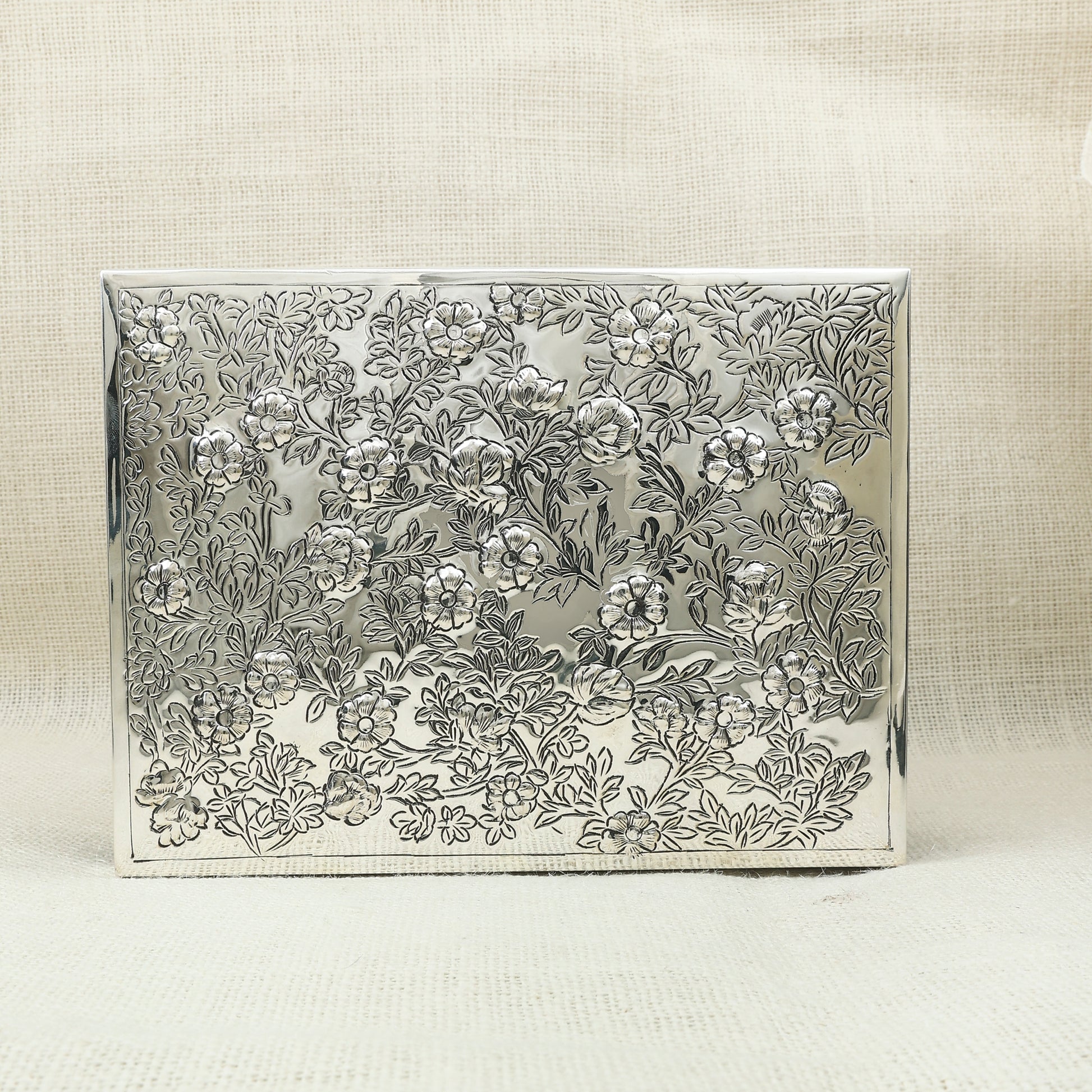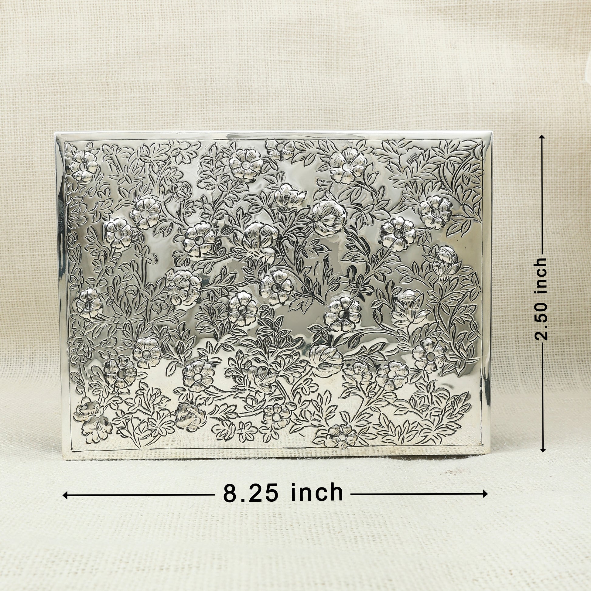 Handcrafted Silver Finish Floral Box – Intricate Embossed Design