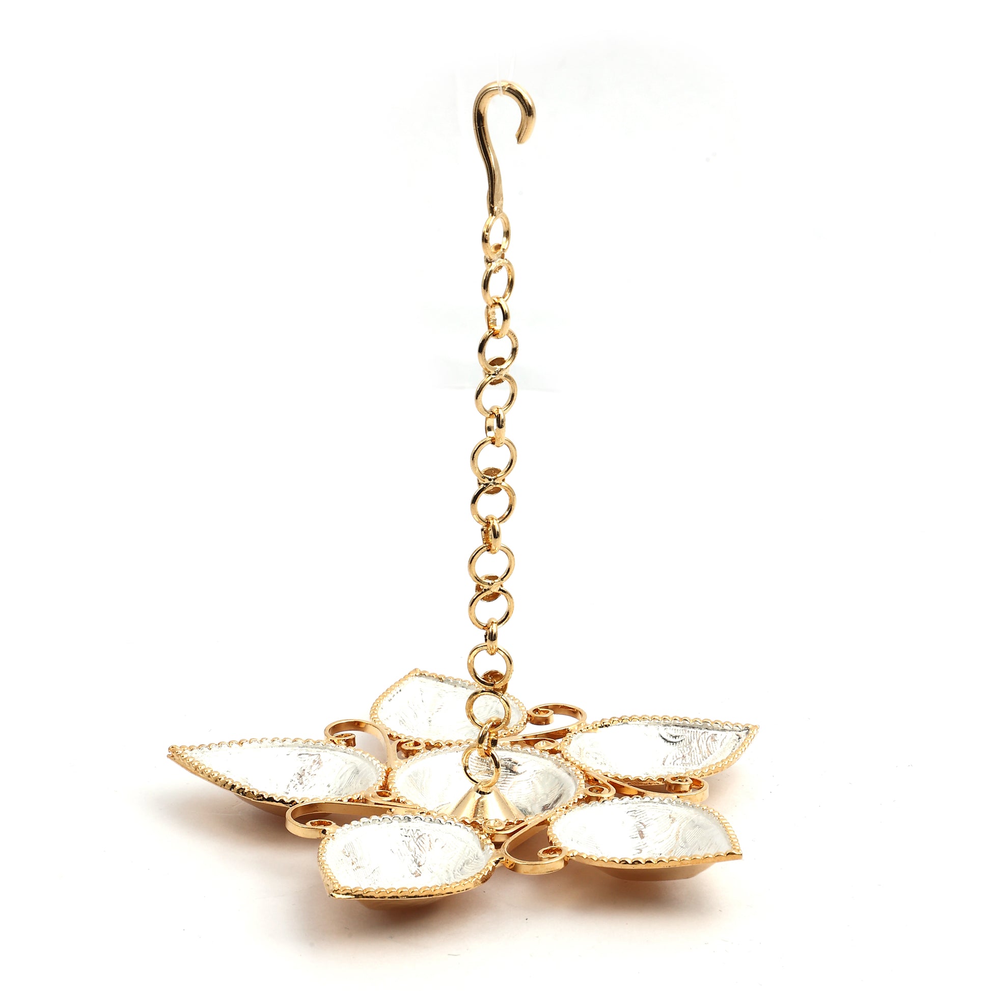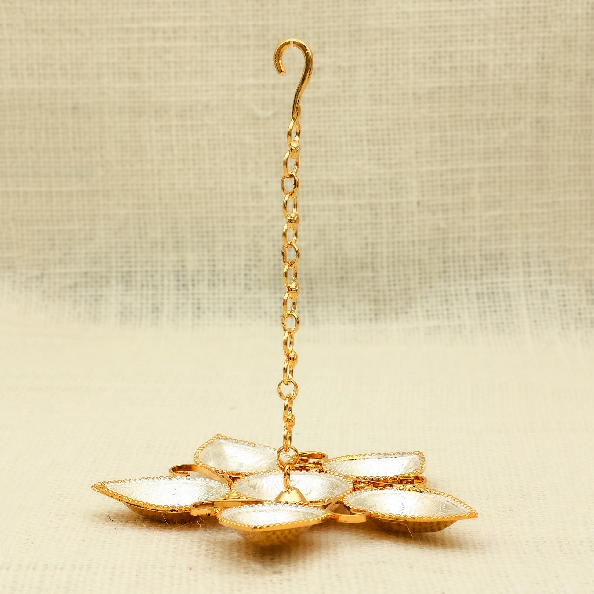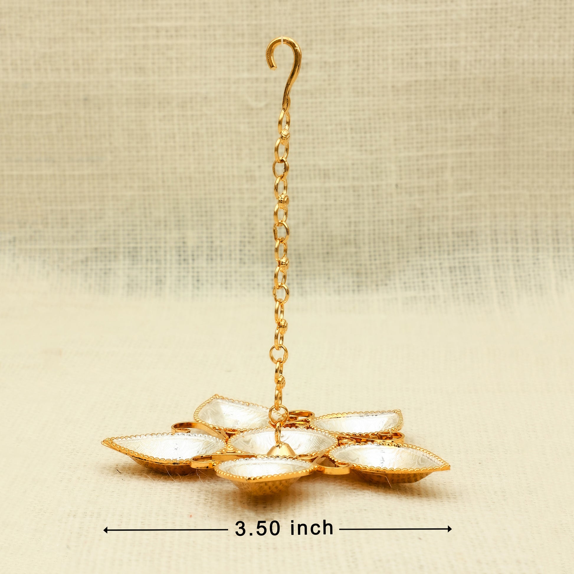 Hanging Lotus Diya Stand – Gold & Silver Finish with Chain Hook