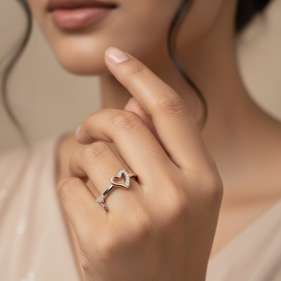Elegant and symbolic, the TARAVA Interlocked Hearts Sterling Silver Ring represents unity, love, and deep emotional connection. The intertwined heart design paired with subtle sparkle makes it a meaningful statement piece for everyday wear or special gifting.