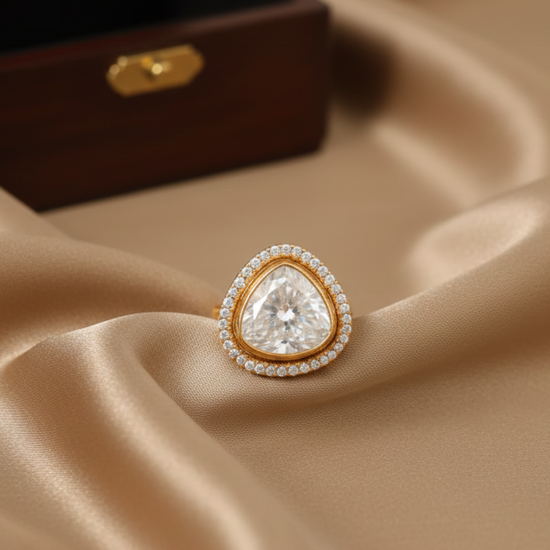 Minimal polki silver ring with a soft pastel center stone, perfect for subtle everyday elegance.