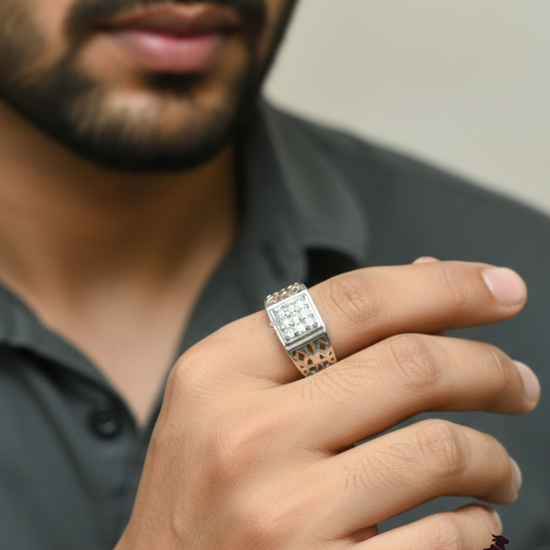 A timeless design that blends traditional craftsmanship with modern styling. The square CZ panel offers a clean and powerful aesthetic, making it suitable for both everyday and occasion wear.