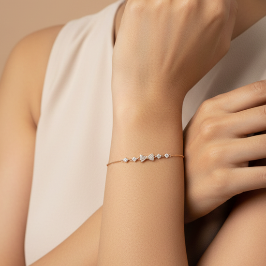 Slim silver bracelet with heart-inspired motif for a delicate romantic look.