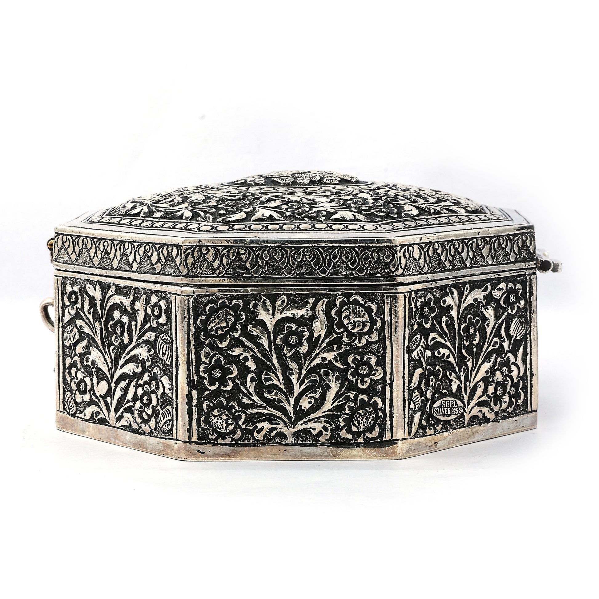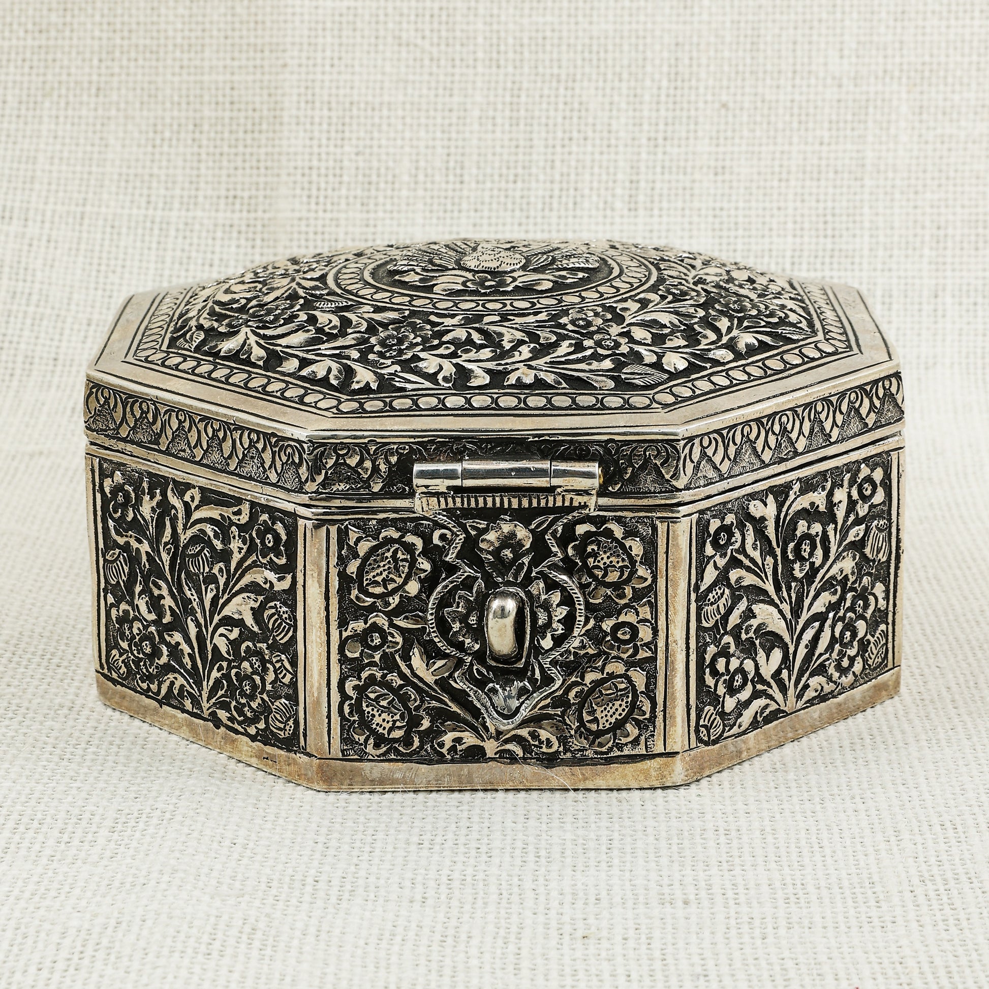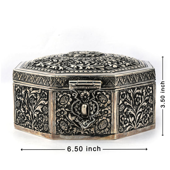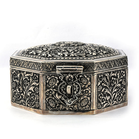 Ornate Silver Octagonal Box – Exquisite Handcrafted Storage