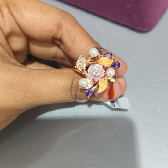 Purple Floral CZ Ring