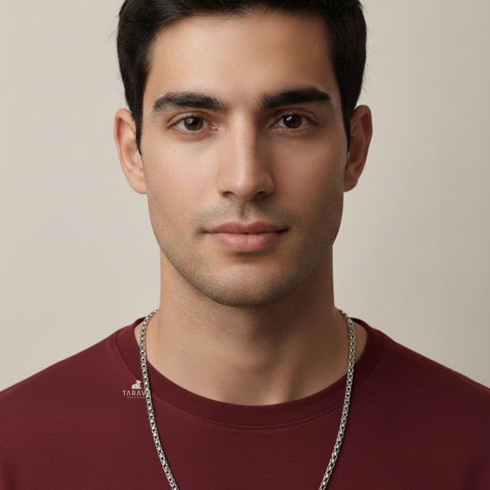 This chain has evenly spaced rounded links that provide a balanced and classic appearance. The polished finish enhances its elegance while keeping the design minimal and versatile.
