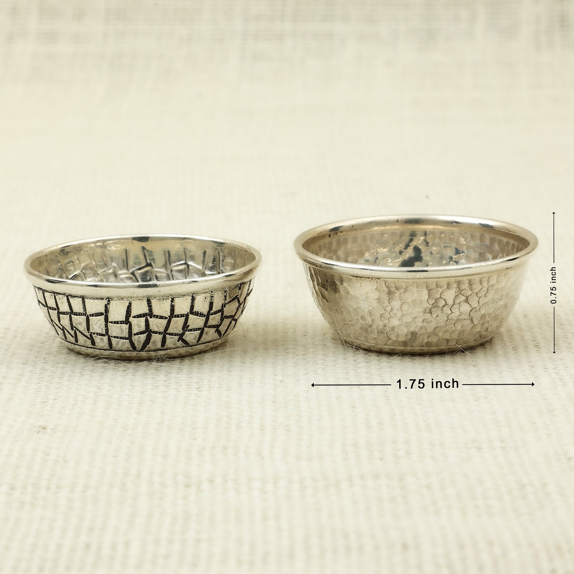 Set of 2 Designer Silver Katoris – Textured & Carved