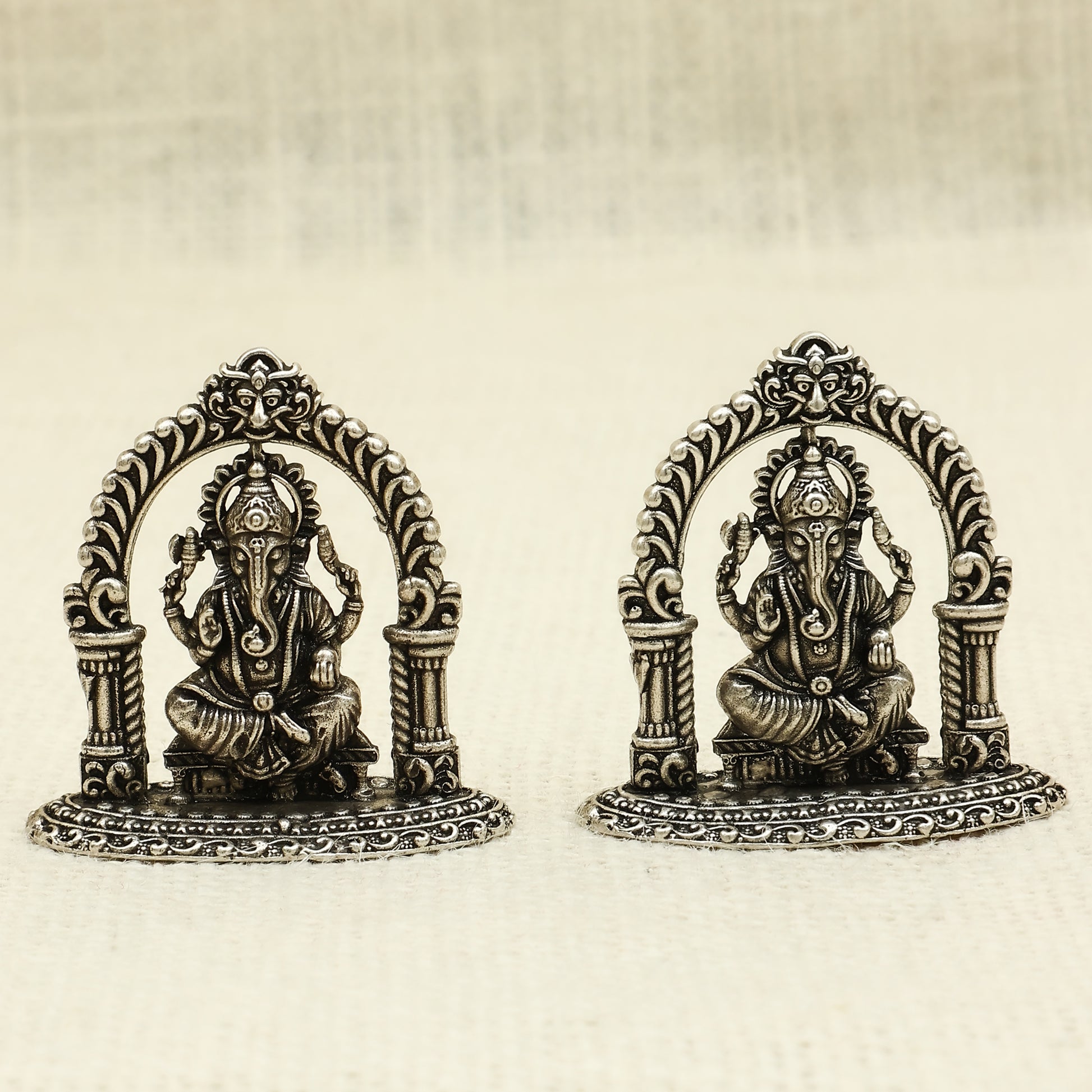 Set of Two Silver Lord Ganesha Idols – Arch Frame Design