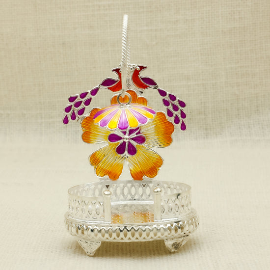 Silver Decorative Sinhasan with Meenakari Work – Floral & Bird Design