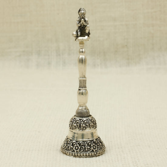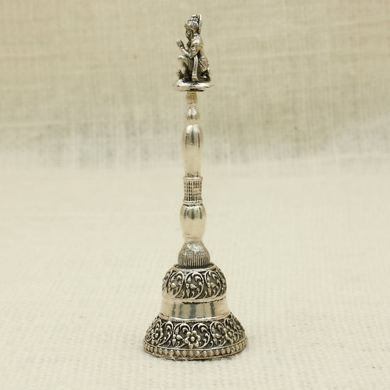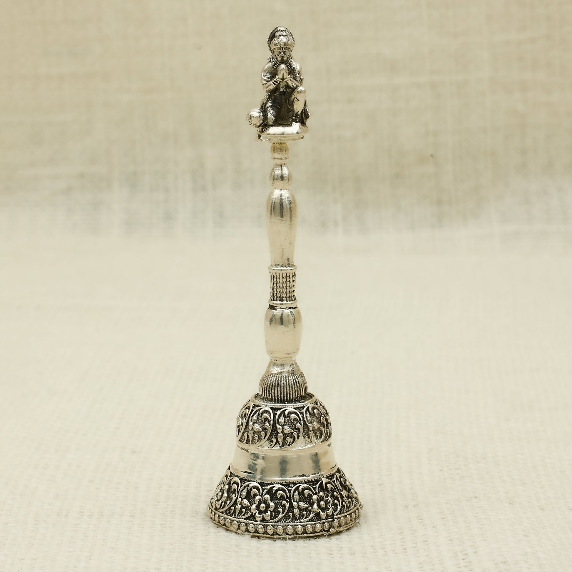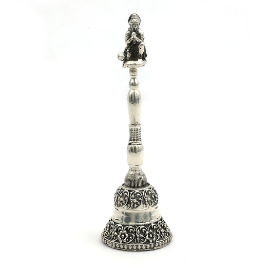 Silver Hanuman Bell – Devotional Ghanti with Folded Hands Idol