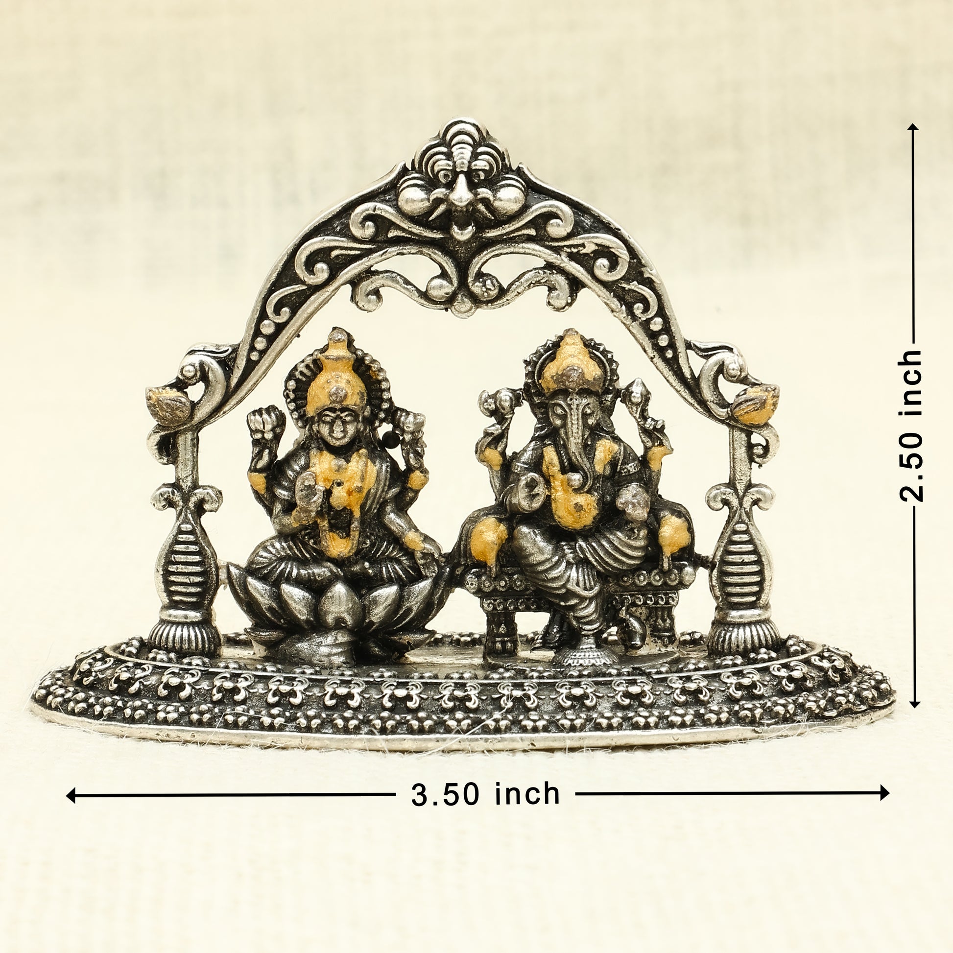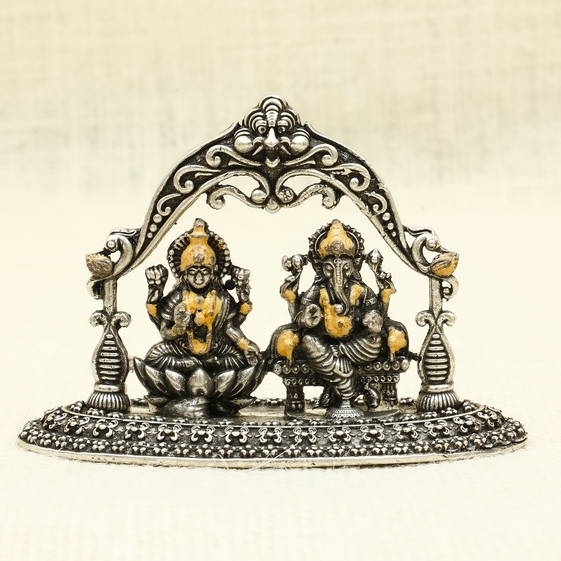 Silver Lakshmi-Ganesha Idol Set under Ornate Arch – Dual Tone Finish