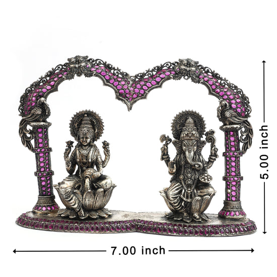 Silver Laxmi Idol and Lord Ganesha with Ornate Arch