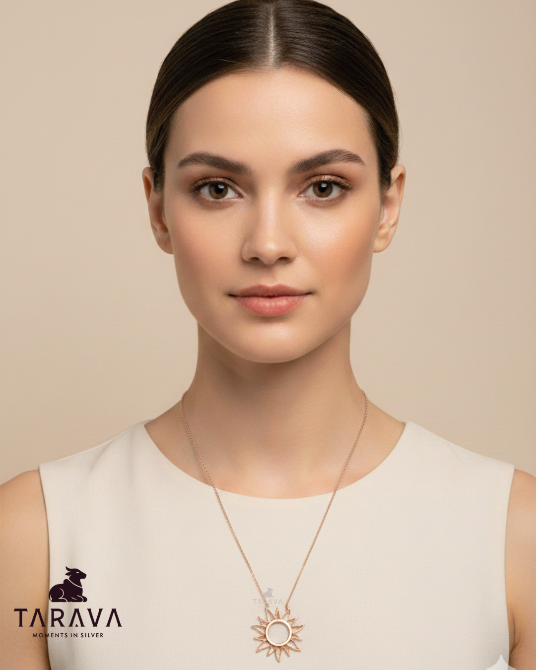 This bold sun-inspired pendant represents positivity, strength, and warmth. Its circular centre with radiant rays creates a striking statement piece while remaining lightweight.
