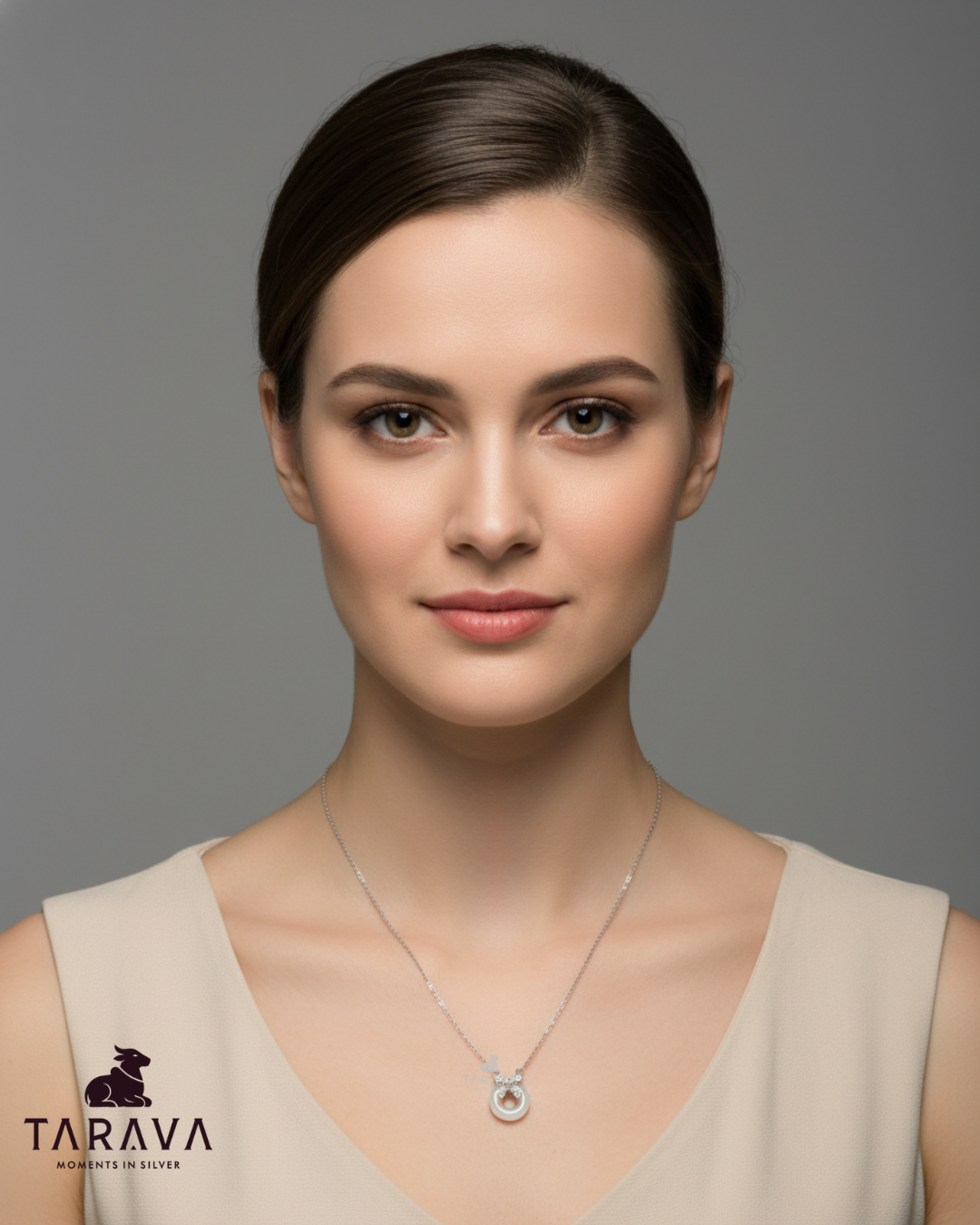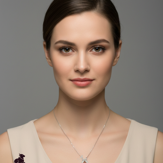 A graceful circular pendant featuring a smooth white stone loop paired with a delicate bow-style crystal motif. The minimal chain enhances its elegant, everyday appeal.